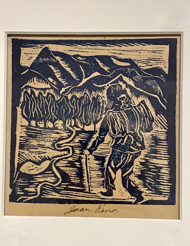 Juan Pino’s 1925 linocut print of a voyaging man. Courtesy: Indian Arts Research Center, School for Advanced Research, Santa Fe.