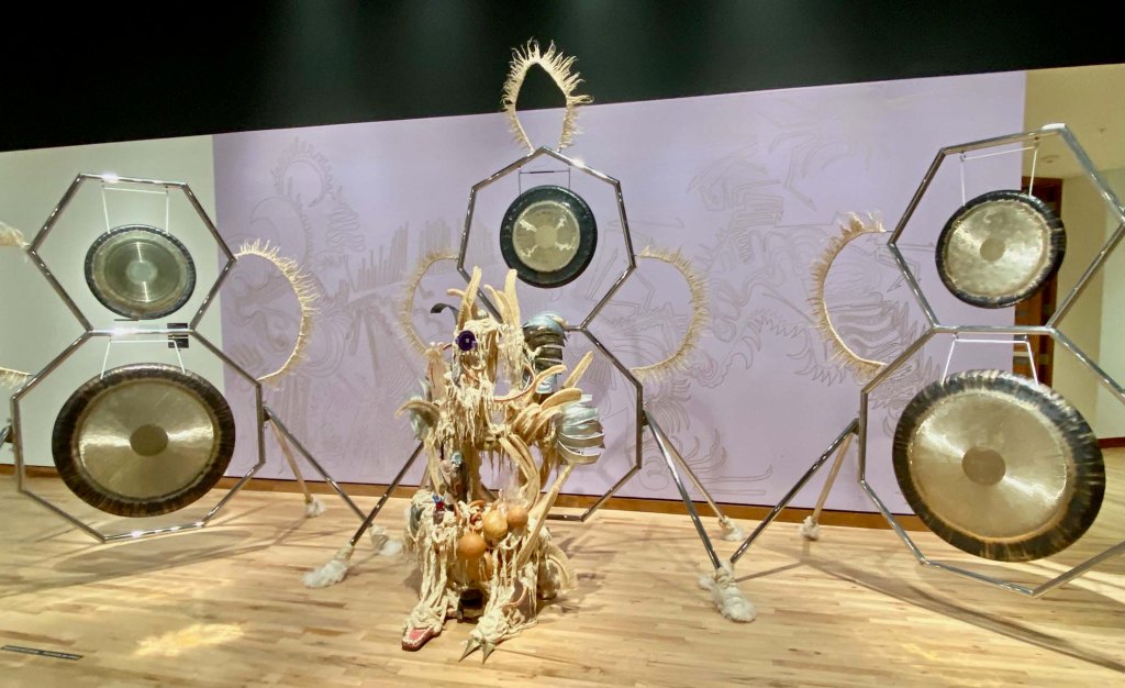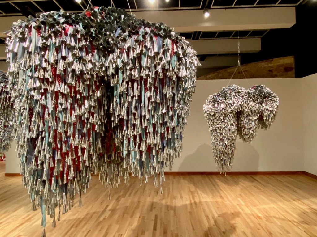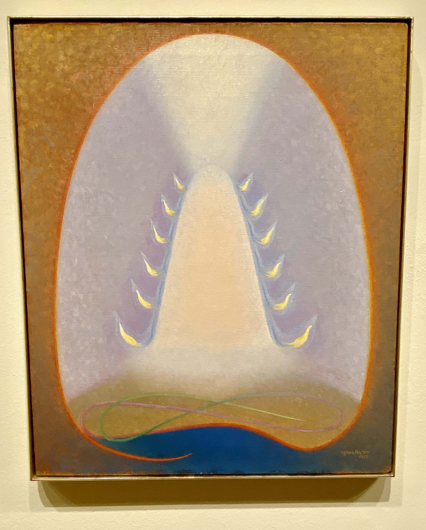 MAD features work by two fiber-arts innovators (and Albers admirers) who pushed boundaries by crafting commanding, large-scale sculptures. Sheila Hicks (who studied with Josef at Yale) and Claire Zeisel (who studied with the former Bauhaus faculty at Chicago’s IIT) are credited as the leaders of America’s textile arts movement. Tufts burst from the wall in Hicks’ piece, and Zeisel’s hovers in the center of the gallery like a shaman.