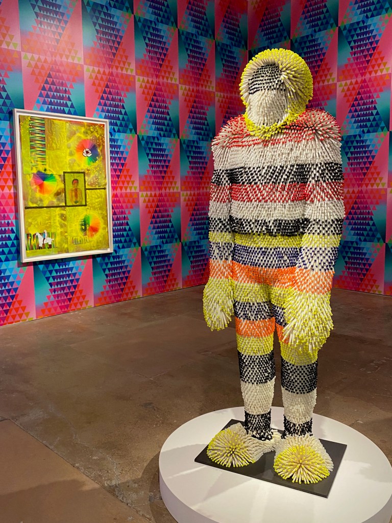 Viñales (Plateau) is a wall-sized “stacked landscape” depicting Cuba’s Viñales Valley, home of ancient karst caves once inhabited by Taino people and later where escaped plantation slaves sought refuge. At a distance, it evokes the valley’s ecological, social, and political legacies; up close, you see that the image is made up of thousands of tiny ceramic tiles. Something to get lost in.