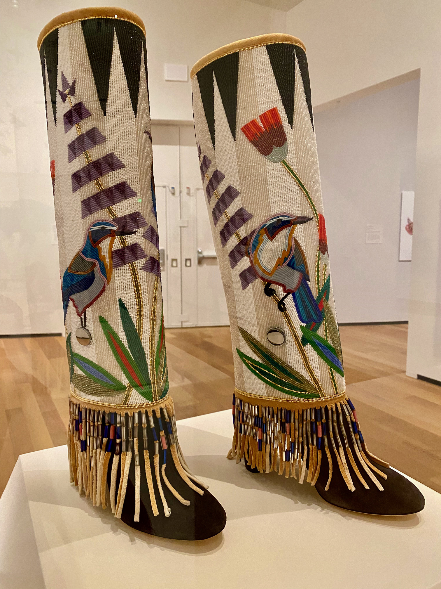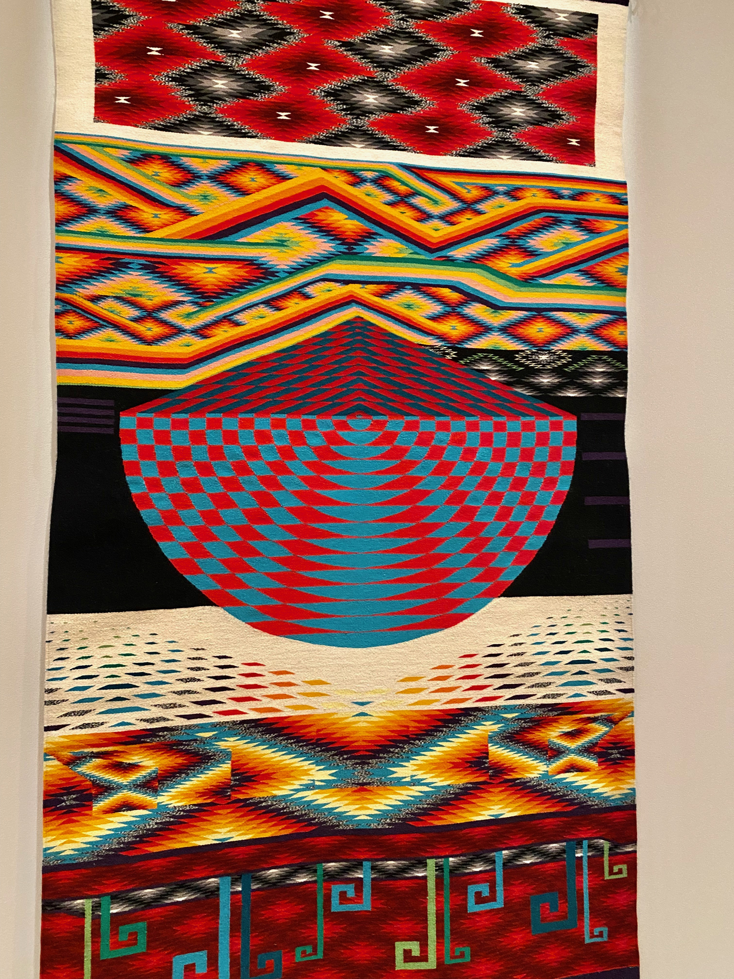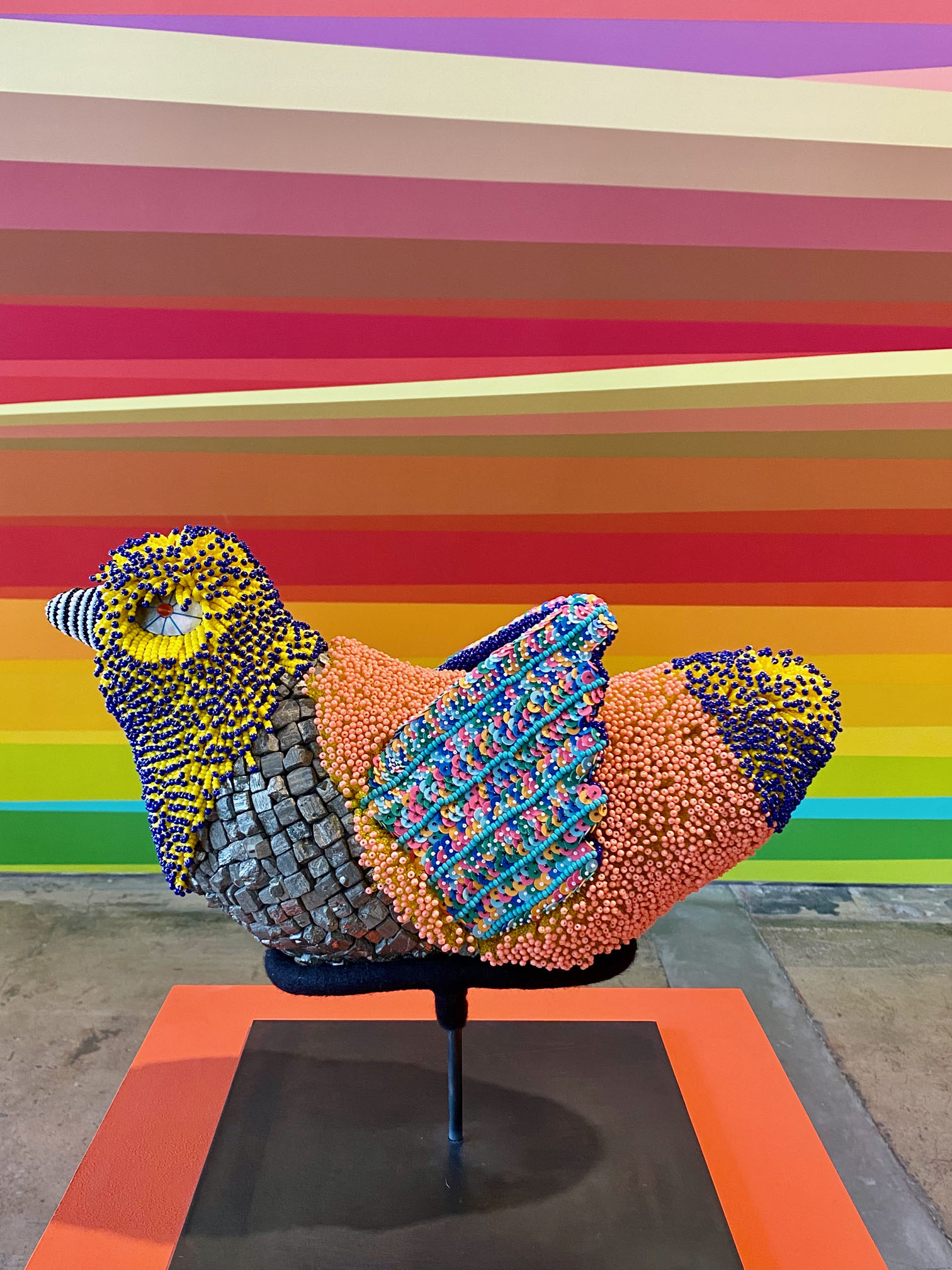 Viñales (Plateau) is a wall-sized “stacked landscape” depicting Cuba’s Viñales Valley, home of ancient karst caves once inhabited by Taino people and later where escaped plantation slaves sought refuge. At a distance, it evokes the valley’s ecological, social, and political legacies; up close, you see that the image is made up of thousands of tiny ceramic tiles. Something to get lost in.