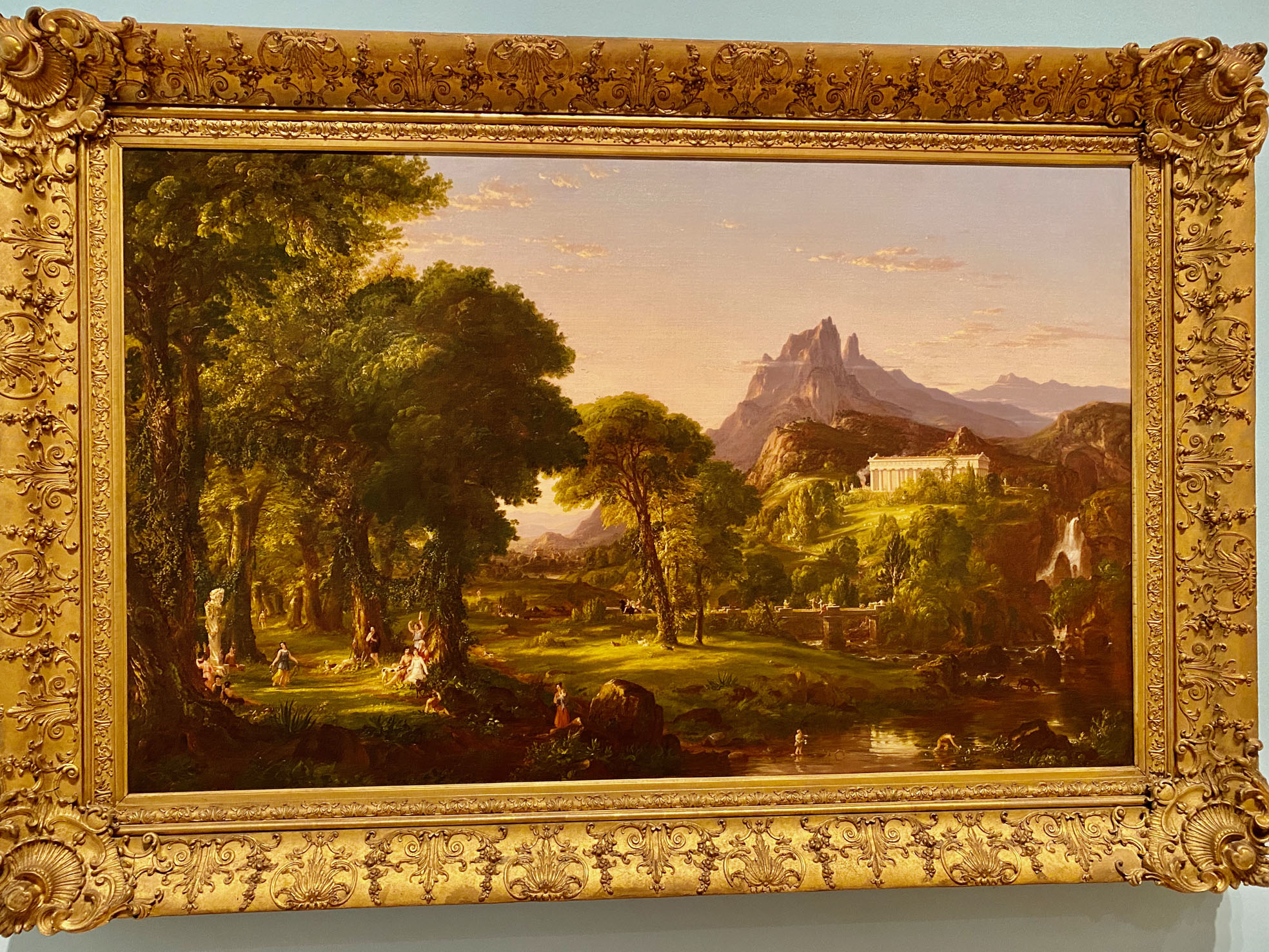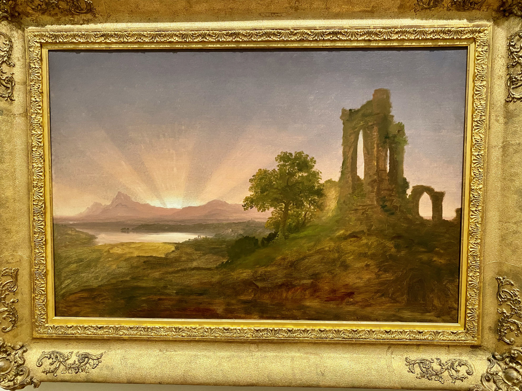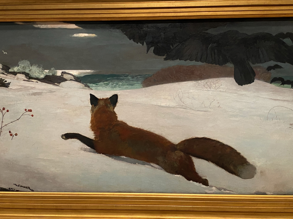 In the first gallery, Fernández selected a Smithson “nonsite” work – a minimalist series of boxes, each packed with rocks from the decidedly unromantic site of Franklin, New Jersey. Smithson’s “nonsite” includes a framed aerial photo that appears to document the site, but it’s a “readjusted” depiction of it. Not what it seems.
