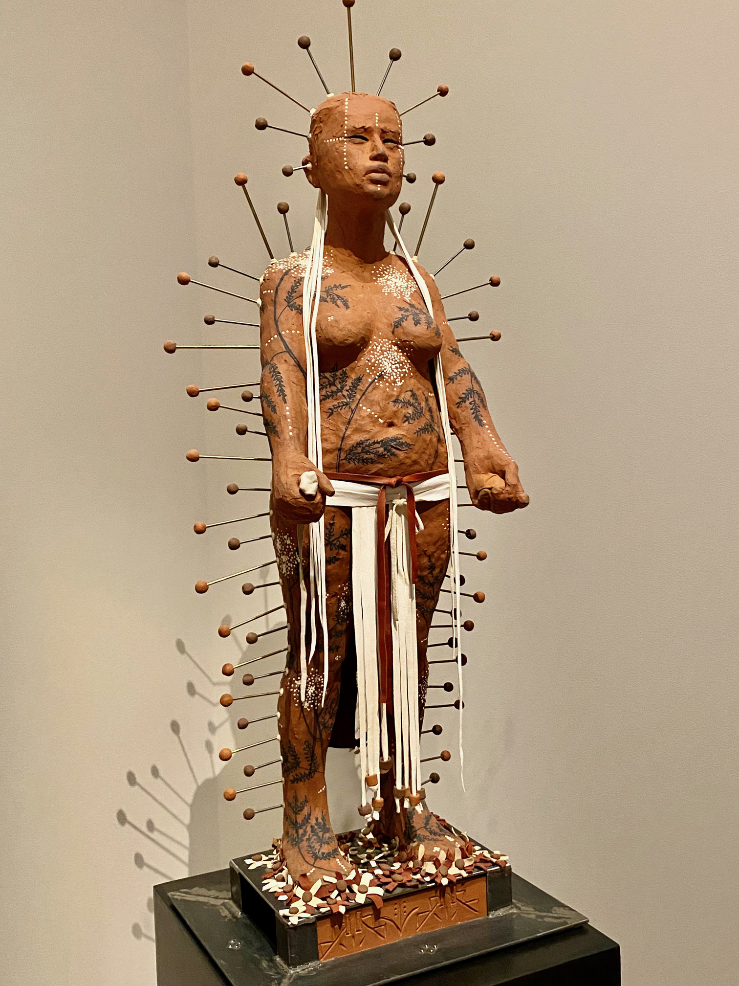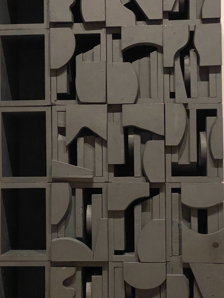 Next to the “nonsite,” Fernández hangs Archipelago, a charcoal wall sculpture., which appears to be a legit map, but it’s not. It’s an imagined map of separate Caribbean islands and continents linked together, making us reflect upon their shared socio-political colonial histories.