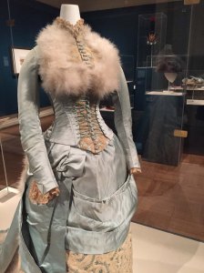 1885 satin evening dress embellished with swans’ down. Collection: Brooklyn Museum collection, The Met.