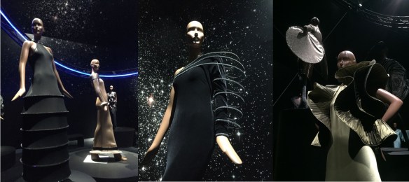 But even more dazzlers await in the linked-chain section – 18th century Islamic helmets, Janelle Monet’s gold-braid wig by The Blonds, and a Seventies chain mini by Paco Rabanne.