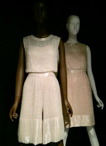 The Sixties section of the show begins with ultra-modern space and art-inspired dresses and jumpsuits and works its way into the flip side – over-the-top psychedelic fabric creations.